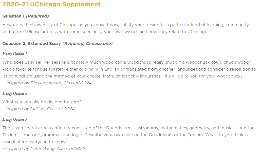▲芝加哥大学2020-2021的本科申请Essay题目