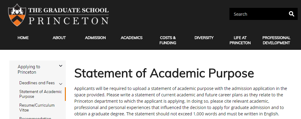 例如普林斯顿大学的个人陈述,就不叫Personal Statement啦~